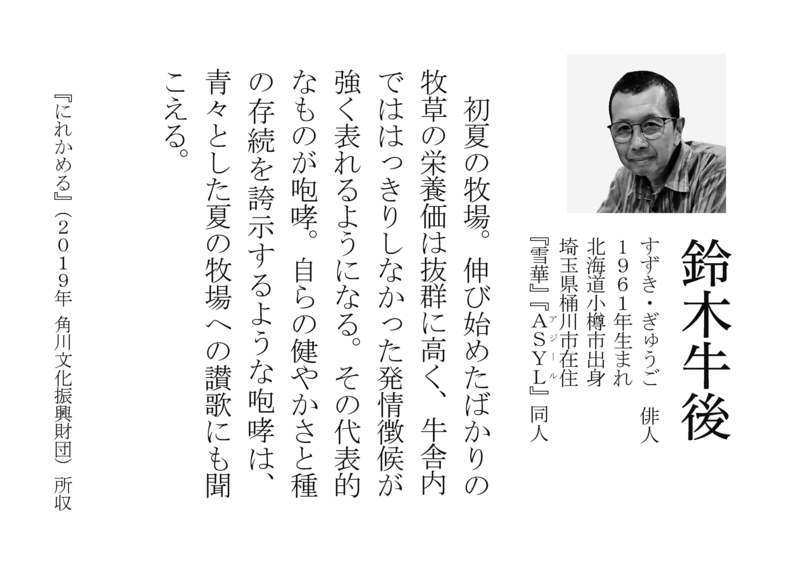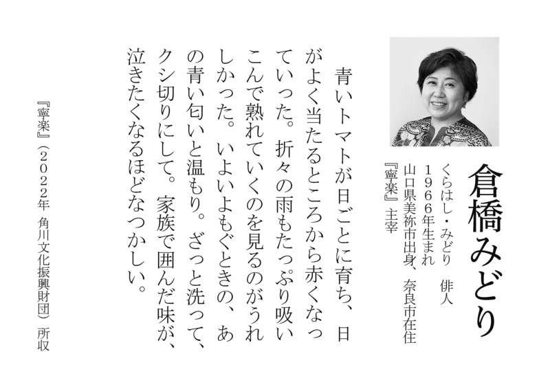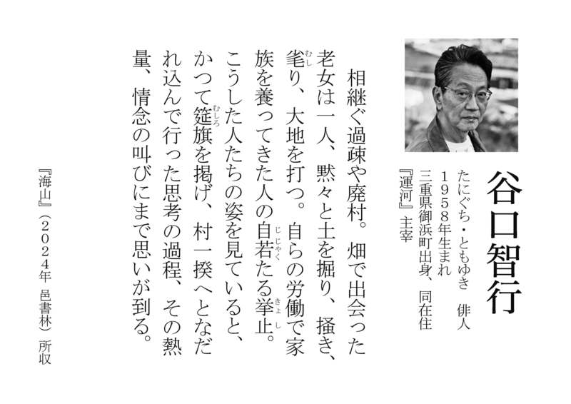 2026年度常設展「いのちを継ぐ―農業と詩歌」の出品作品を公開します。 公開期間:2026年3月10日(火)~2027年3月14日(日) ※朗読音声は順次追加いたします。 展示紹介ページはこちら ※展示図録 掲載順