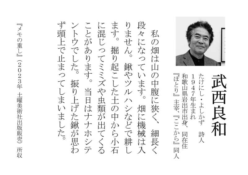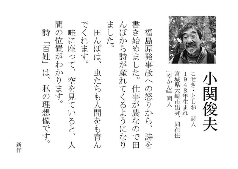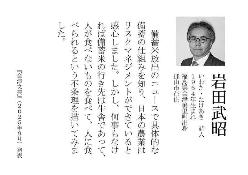 2026年度常設展「いのちを継ぐ―農業と詩歌」の出品作品を公開します。 公開期間:2026年3月10日(火)~2027年3月14日(日) ※朗読音声は順次追加いたします。 展示紹介ページはこちら ※展示図録 掲載順